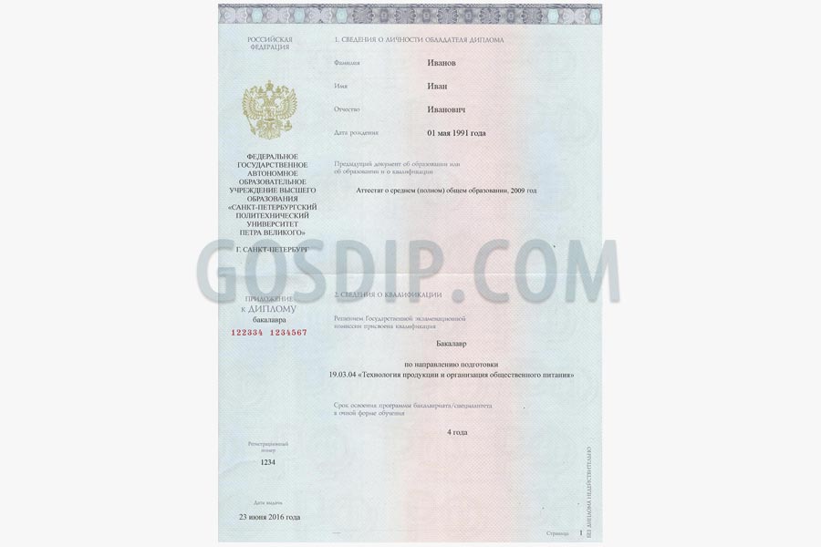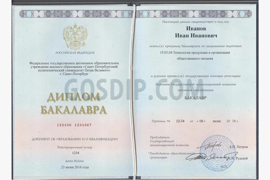 На нашем сайте Вы можете купить готовый заполненный диплом, выданный любым ВУЗом Санкт-Петербурга и других городов России в период с 2014 по 2023 год. В комплект входит бланк, обложка и приложение, оформленные по всем стандартам. Посмотрите, как заполняются дипломы ВУЗов нового образца.